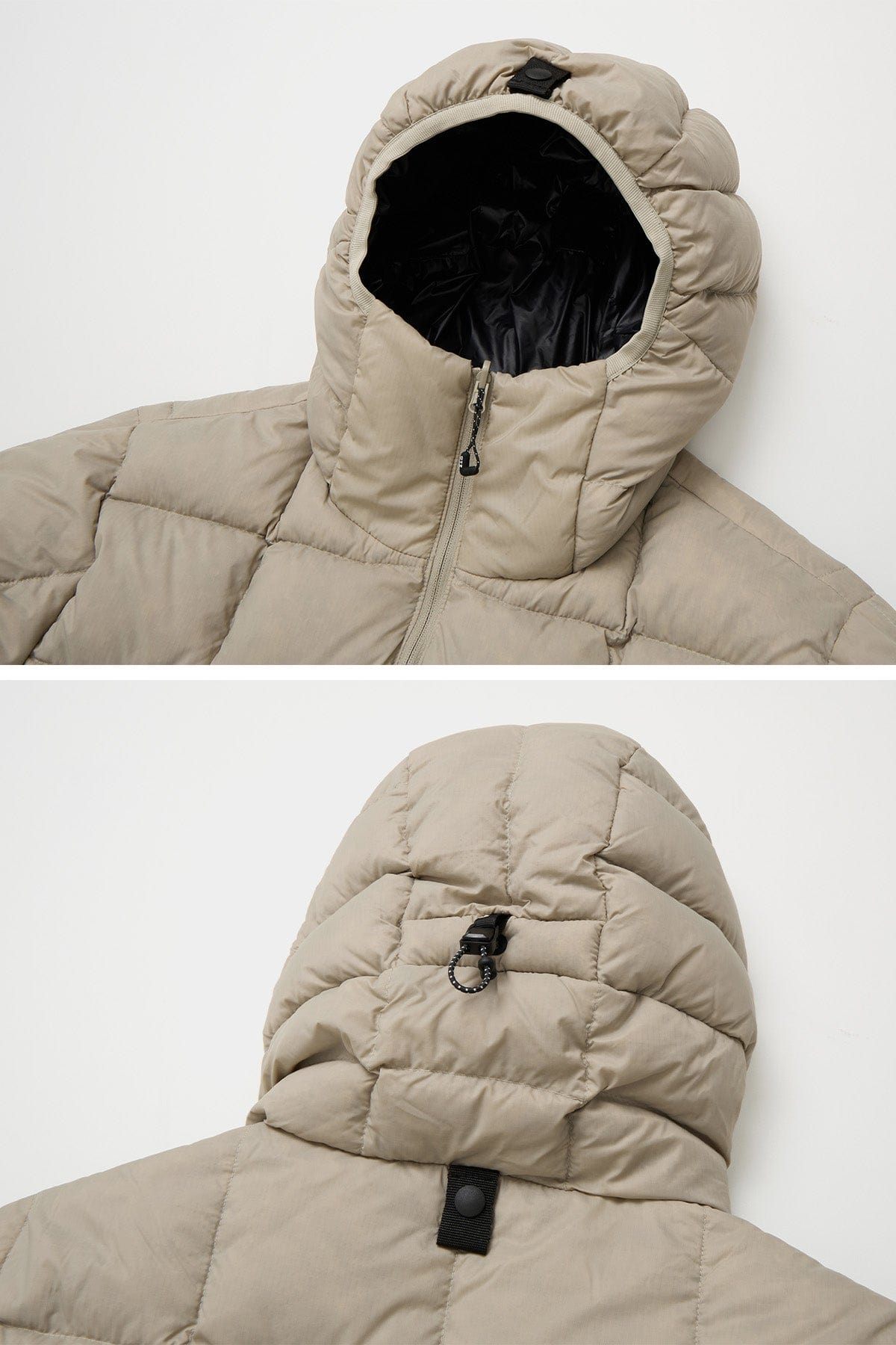 - Composed of a 3-layer jacket and a detachable light-weight down padding