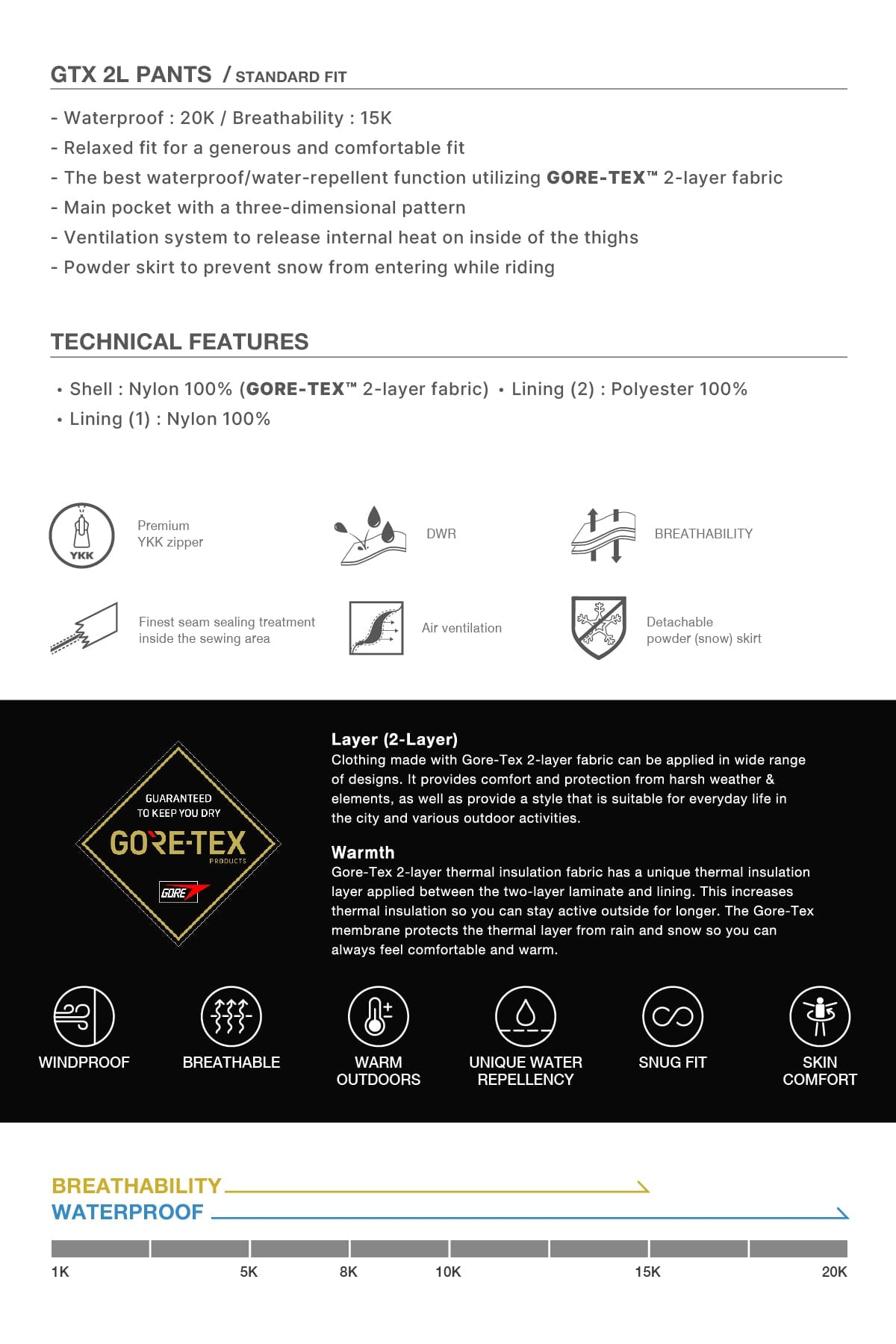 - Waterproof : 20K / Breathability : 15K