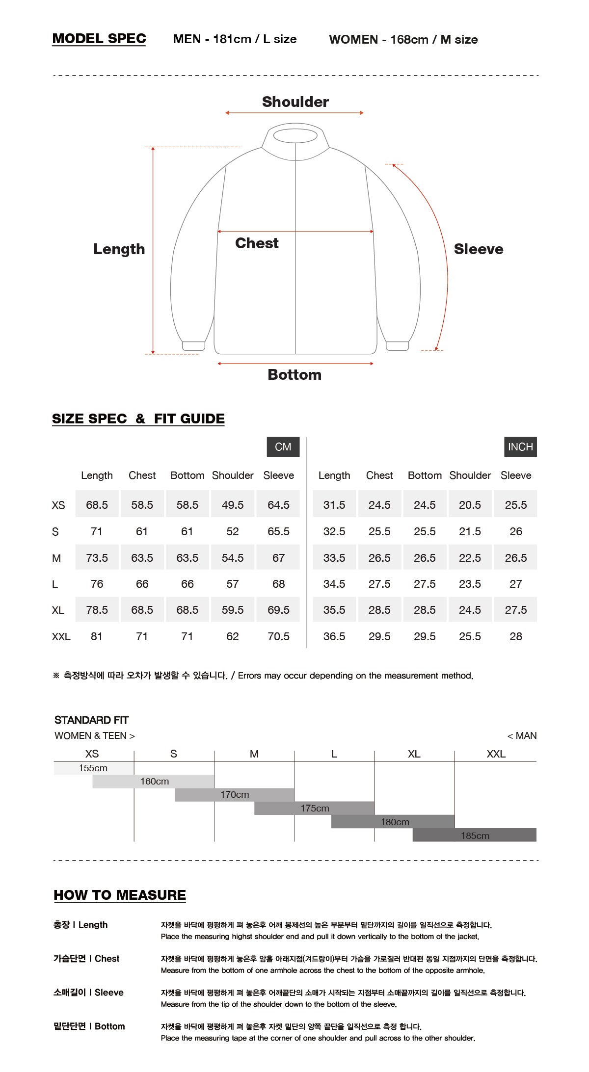 * Model spec : MEN - 181cm, L size / WOMEN - 168cm, M size