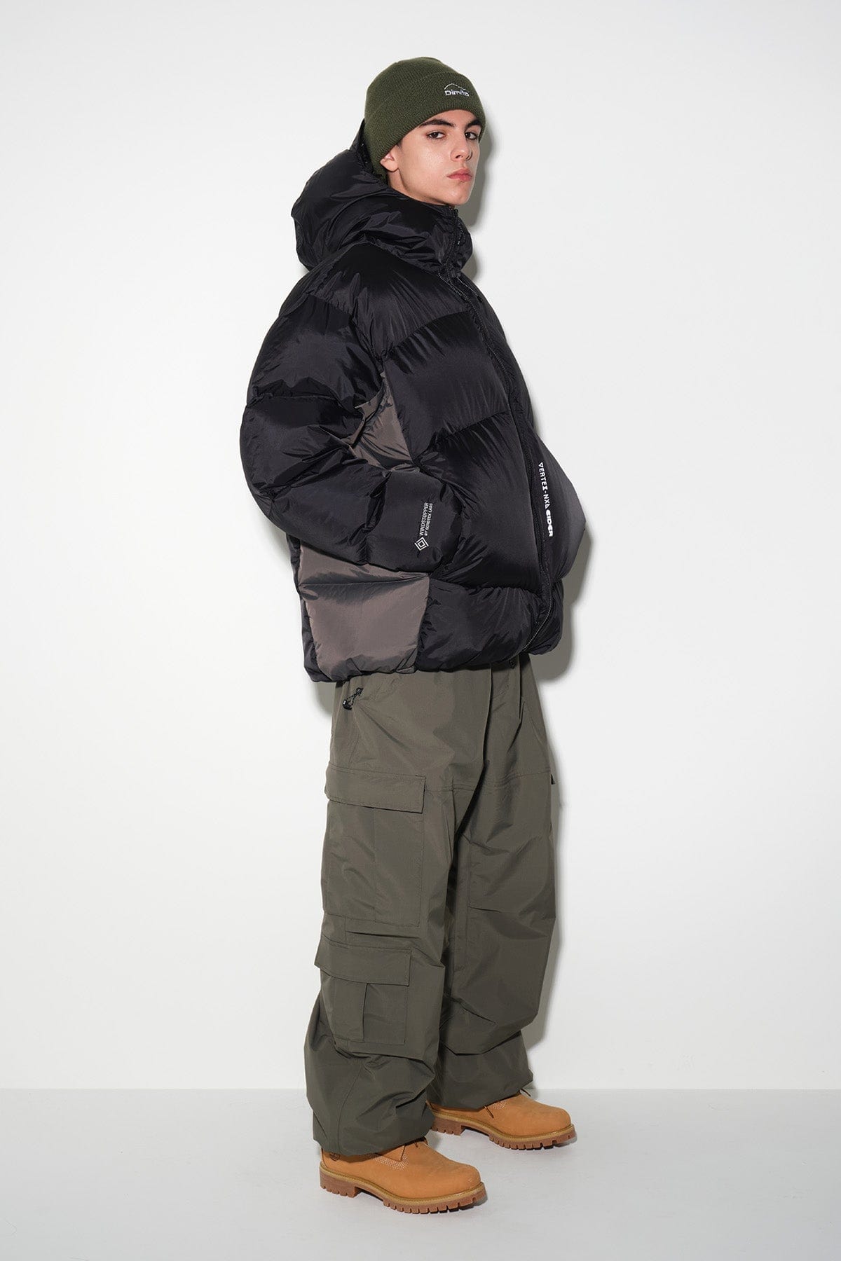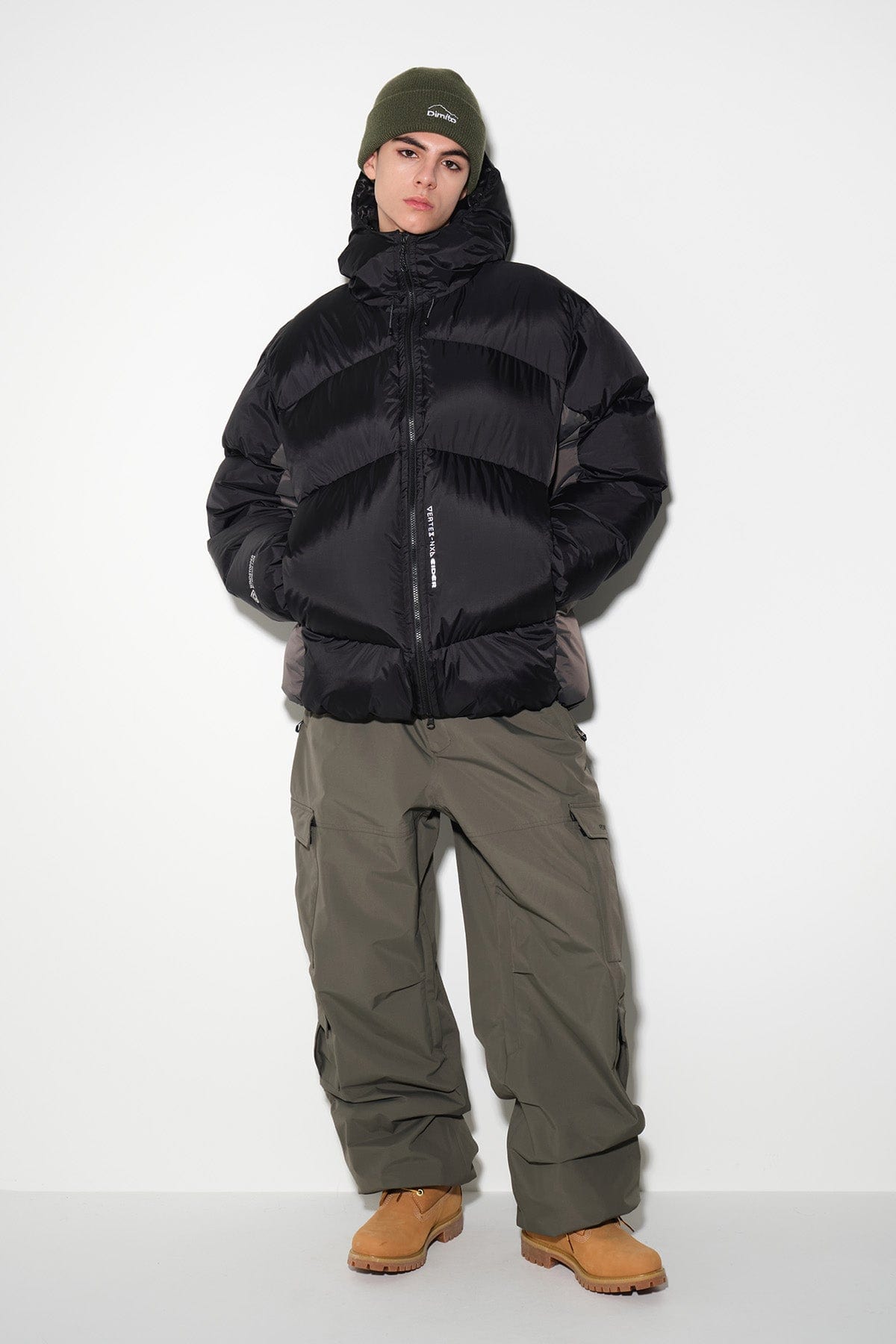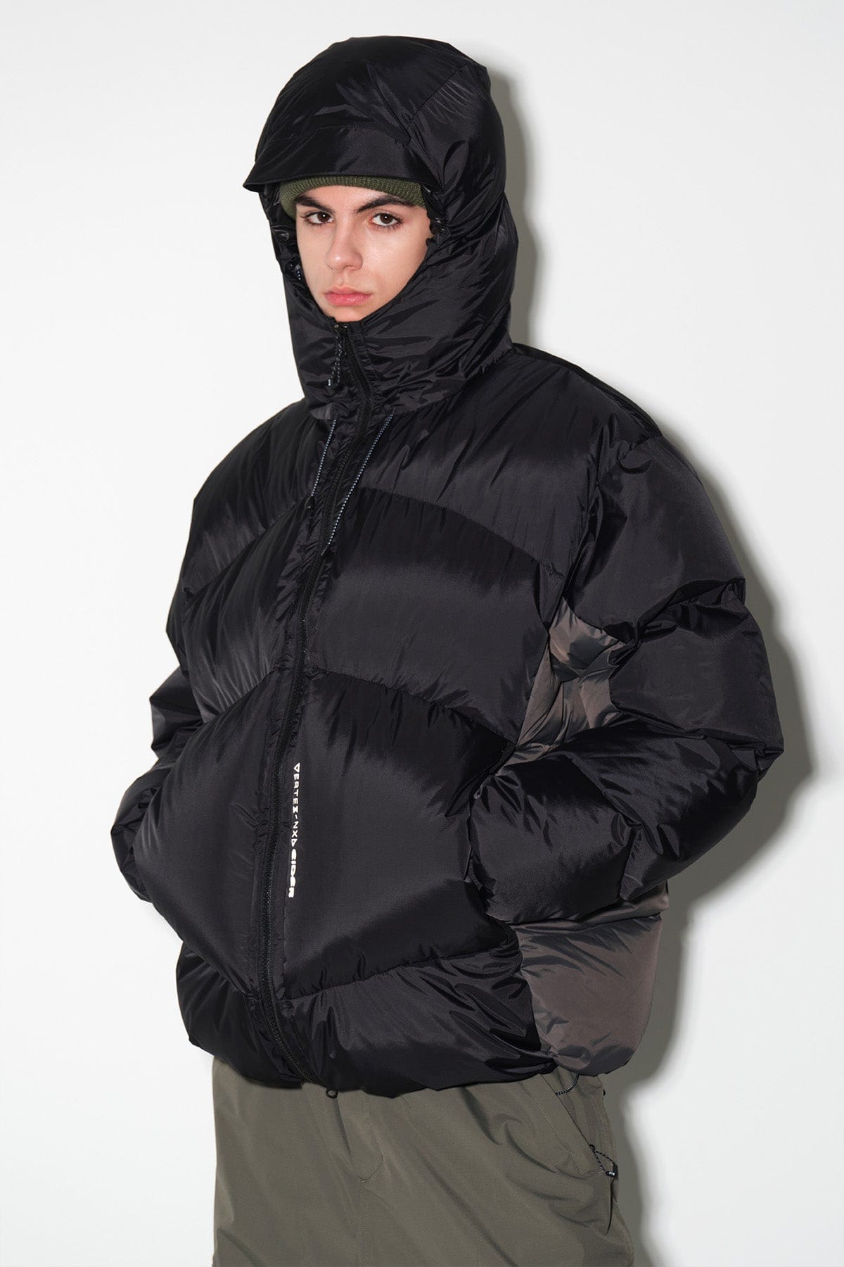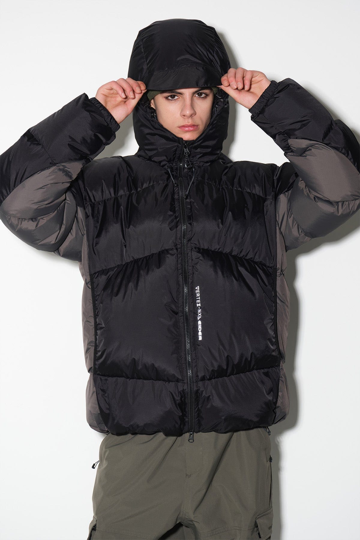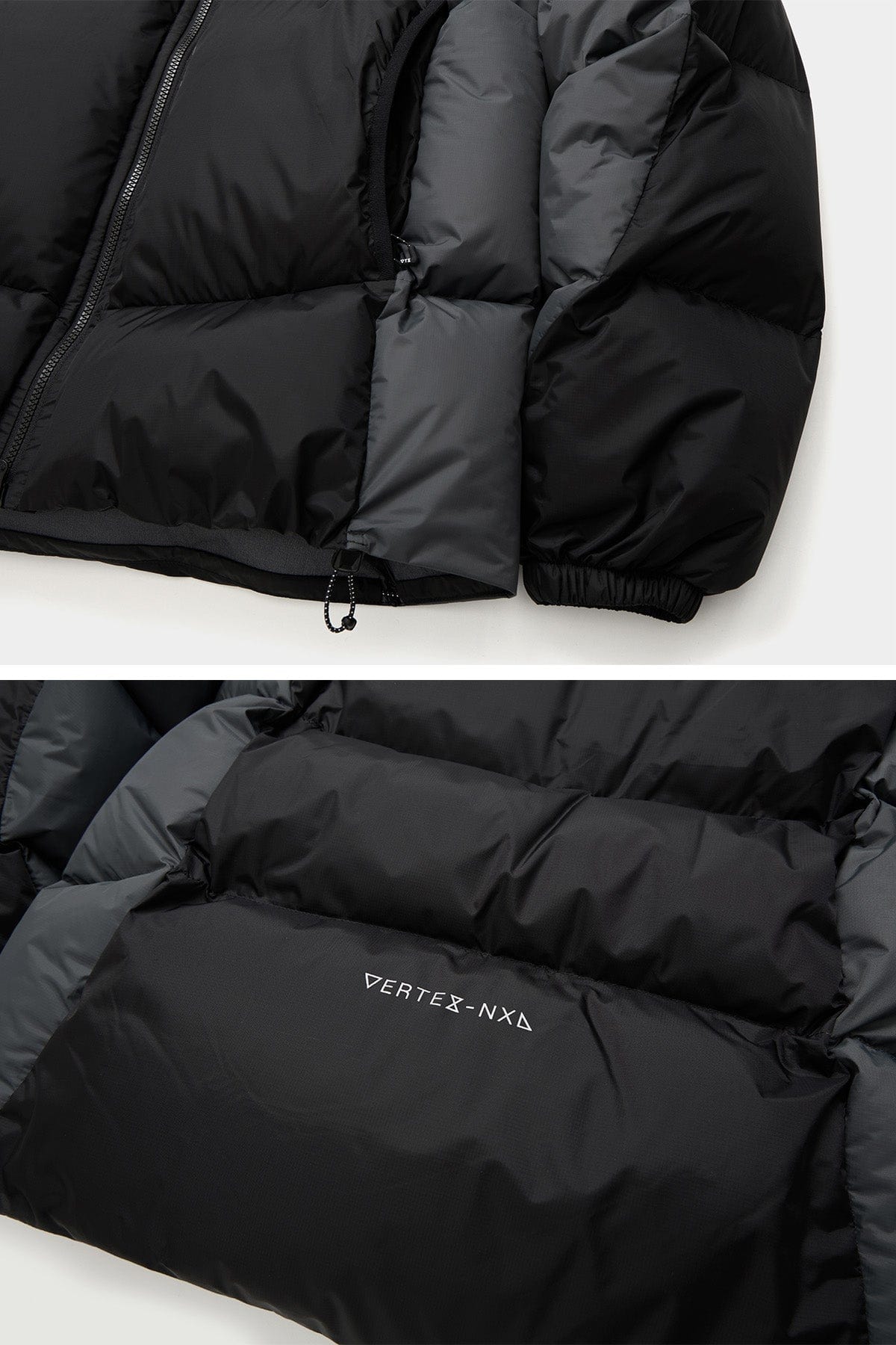 - Heavy down jacket optimized for cold elements with abundant fill volume on the hood and body