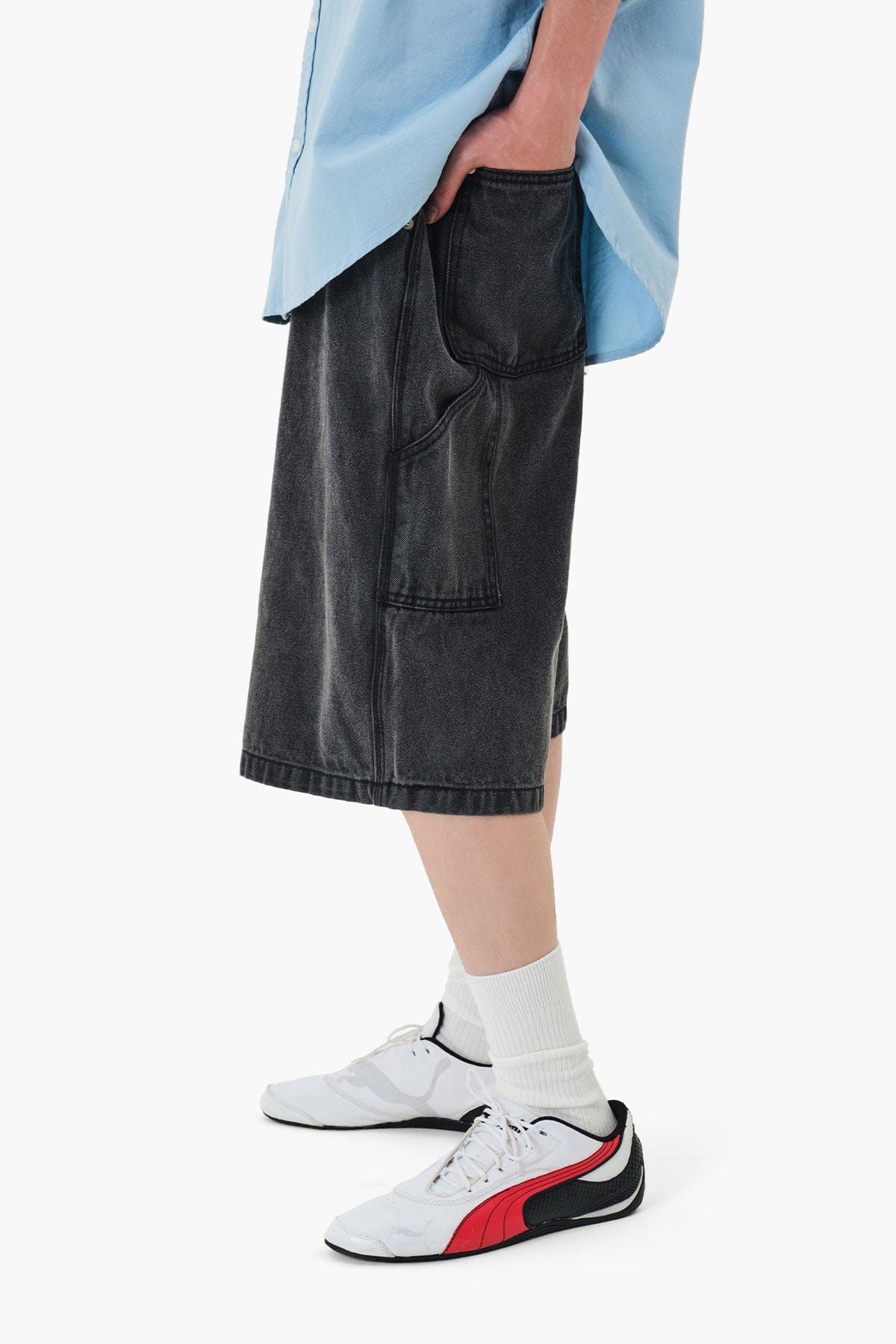 CARPENTER DENIM SHORTS (LONG & LOOSE FIT) GREY