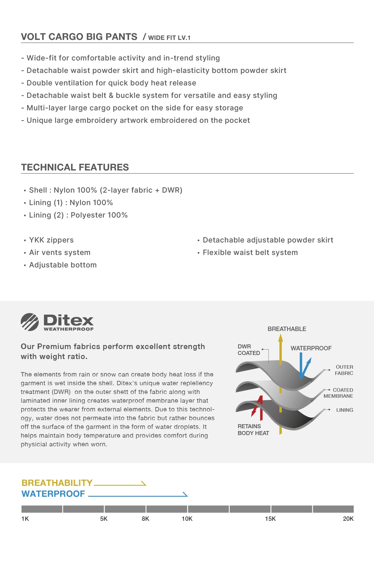 - Waterproof : 10K / Breathability : 8K