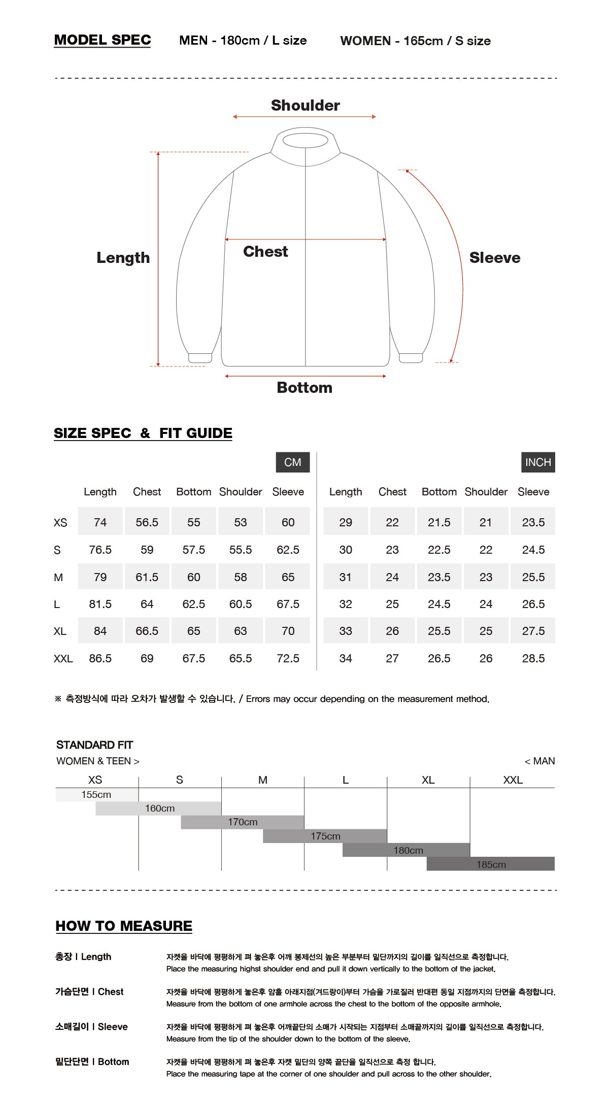* Model spec : MEN - 180cm, L size / WOMEN - 165cm, S size
