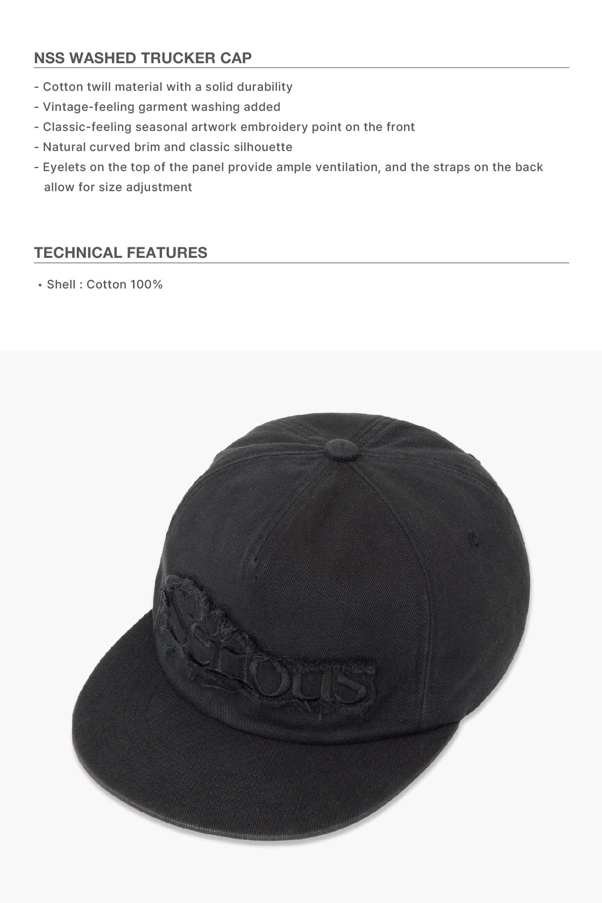NSS WASHED TRUCKER CAP WASHED BLACK