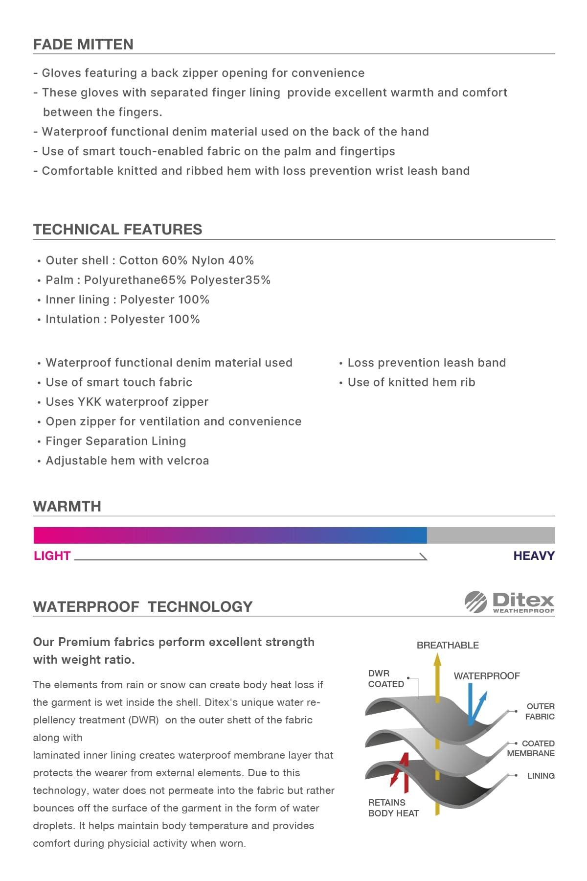 - Use of smart touch-enabled fabric on the palm and fingertips