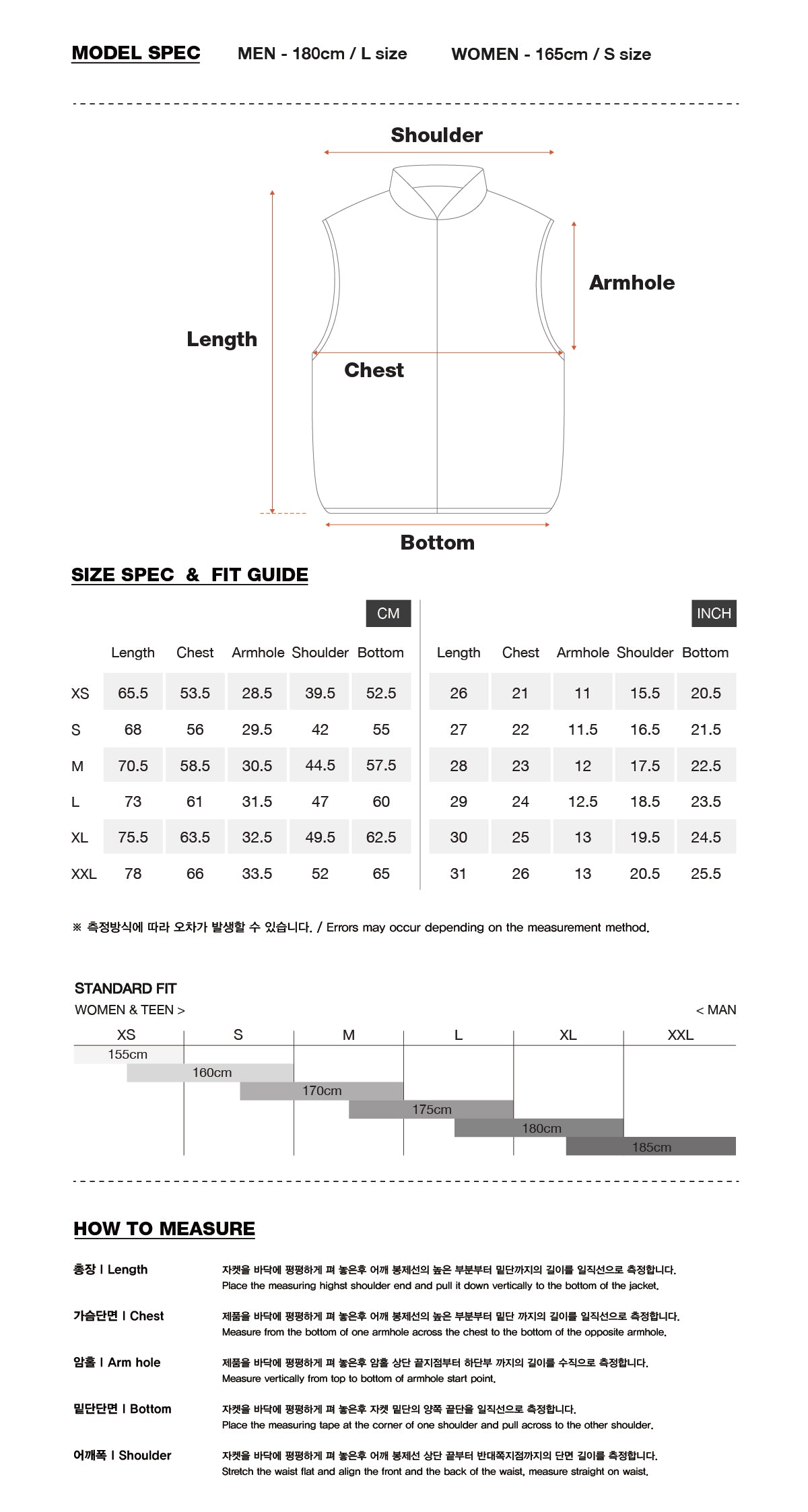 * Model spec : MEN - 180cm, L size / WOMEN - 165cm, S size