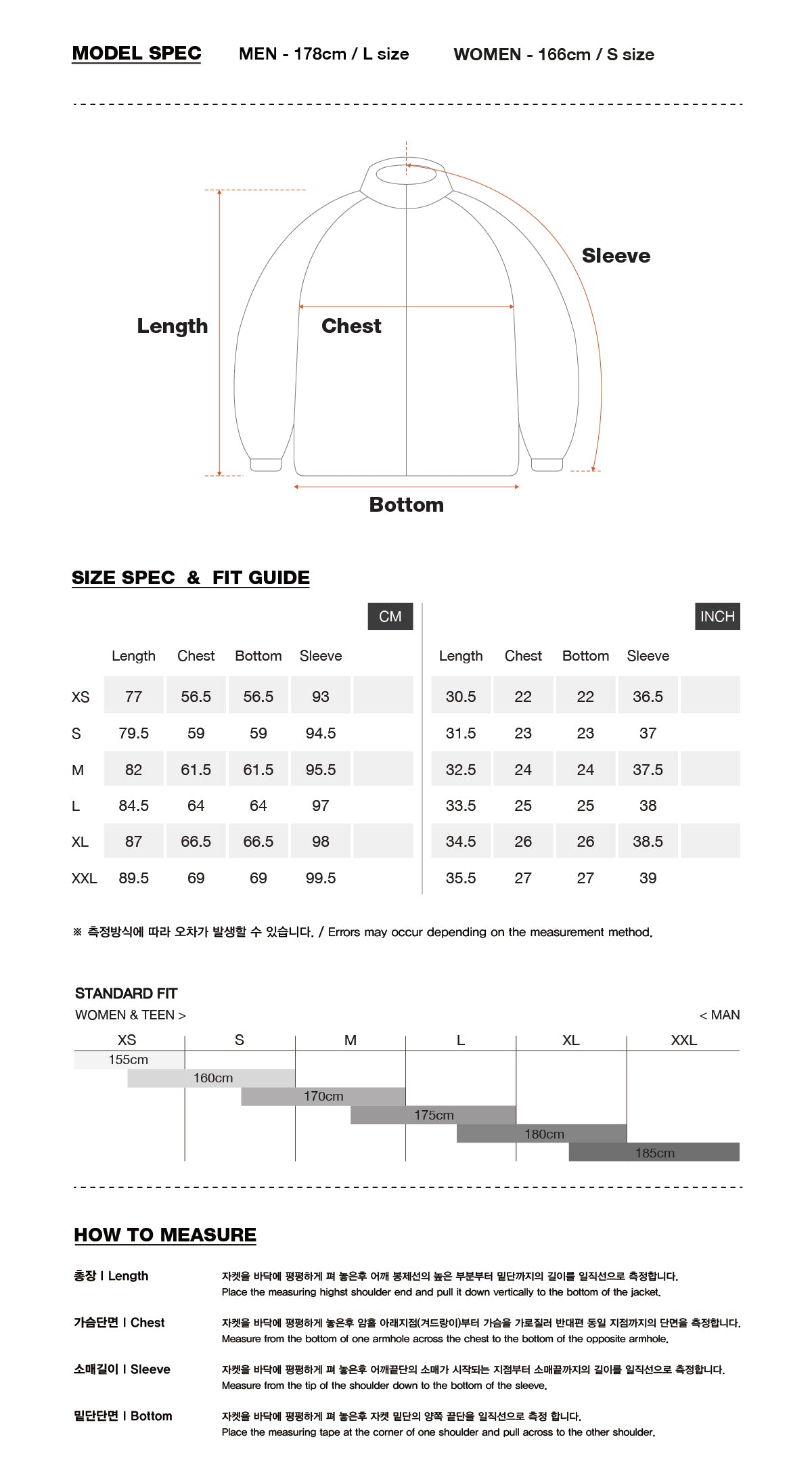 * Model spec : MEN - 178cm, L size / WOMEN - 166cm, S size