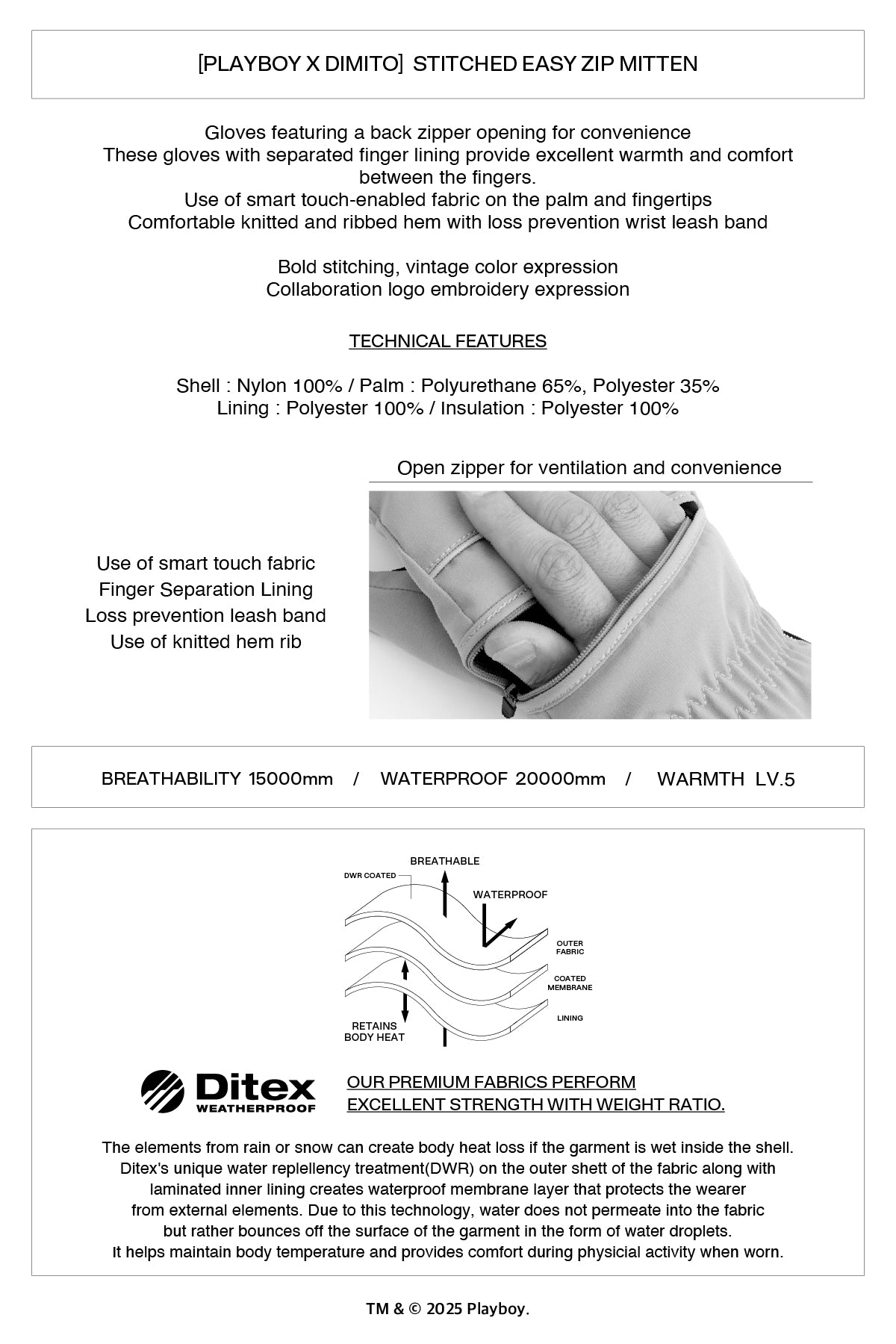 [PLAYBOY x DIMITO] STITCHED EASY ZIP MITTEN BLACK