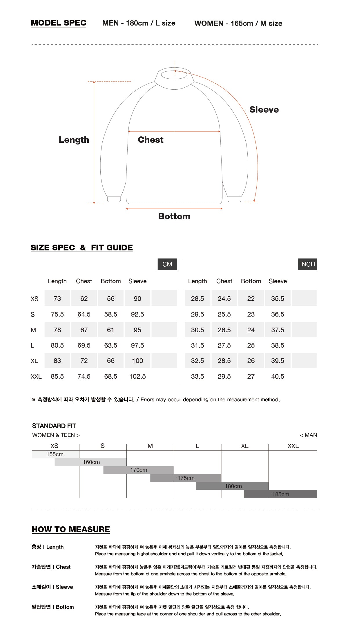 * Model spec : MEN - 180cm, L size / WOMEN - 165cm, M size