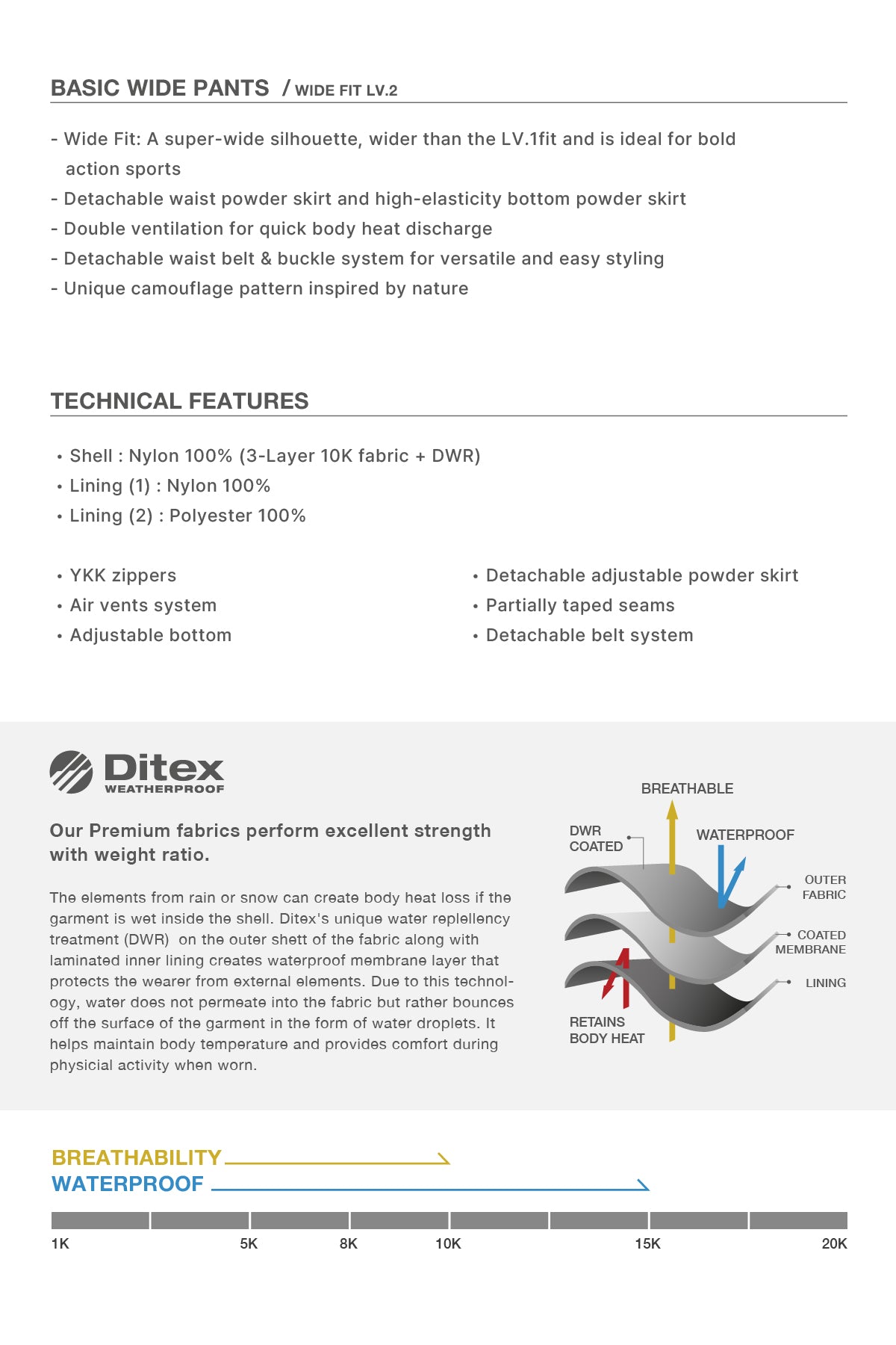 - Waterproof : 15K / Breathability : 10K